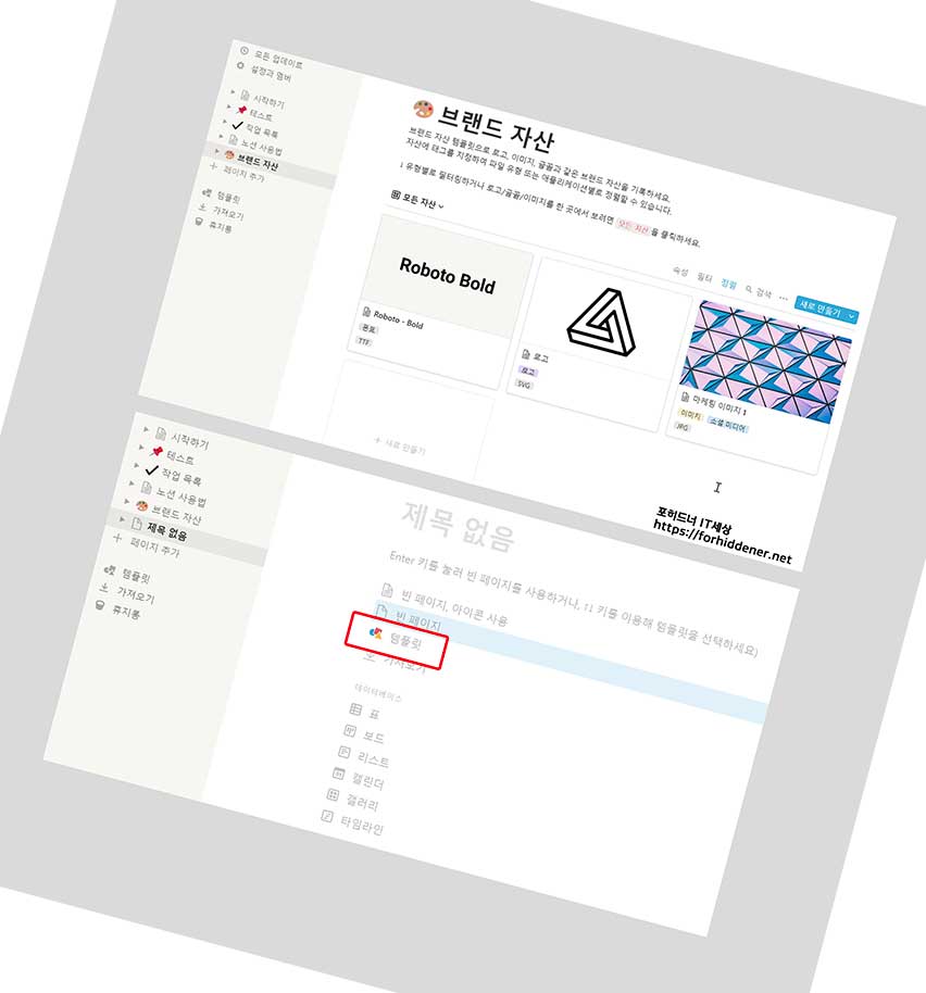 브랜드 자산 템플릿으로 로고, 이미지, 글꼴과 같은 브랜드 자산을 기록할 수 있습니다. 보기의 모든 자산에서