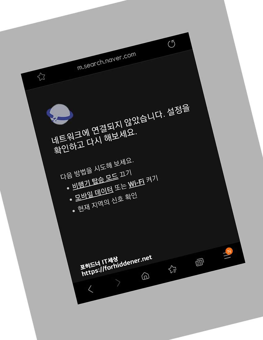 인터넷 앱을 켜서 검색을 했더니 위와 같이 네트워크에 연결되지 않았습니다. 설정을 확인하고 다시 해보세요 라고 메시지가 뜹니다. 인터넷 DATA 연결을 차단시키는 방법 중에서는? 가장 쉽게는 비행기 모드 (에어플레인 모드)를 켜는 방법이 있지만 위와 같은 방법으로 차단을 시킬 수도 있습니다. 참고해주시면 좋을것 같습니다. 이상 지금까지 "갤럭시 데이터 차단" 하는 방법에 대해 배워봤는데요~ 오늘 내용 도움이 되셨나요? 글을 끝까지 읽어주셔서 감사합니다.
